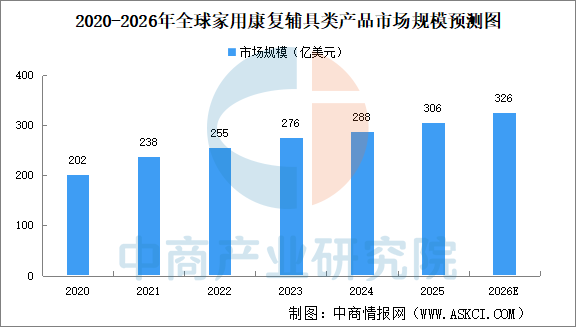 在人口老齡化、慢病高發(fā)和技術(shù)創(chuàng)新的共同推動下,全球家用康復輔具類產(chǎn)品行業(yè)呈現(xiàn)出市場規(guī)模持續(xù)擴大的趨勢。中商產(chǎn)業(yè)研究院發(fā)布的《2026-2031年全球及中國家用醫(yī)療器械行業(yè)市場前景預測及未來發(fā)展趨勢研究報告》顯示,2025年全球家用康復輔具類產(chǎn)品市場規(guī)模306億美元,2026年將達到326億美元。