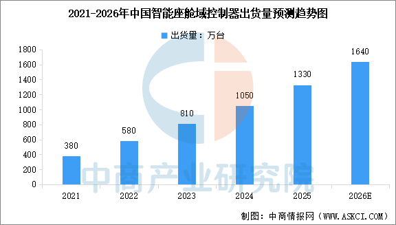 受益于智能座艙滲透率提升,座艙域控制器出貨量持續(xù)攀升。中商產(chǎn)業(yè)研究院發(fā)布的《2025-2030年中國智能座艙行業(yè)前景與市場趨勢洞察專題研究報(bào)告》顯示,2024年中國智能座艙域控制器出貨量達(dá)到1050萬臺,2025年出貨量約為1330萬臺。中商產(chǎn)業(yè)研究院分析師預(yù)測,2026年中國智能座艙域控制器出貨量將達(dá)到1640萬臺。
