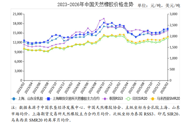 2026年2月天然橡膠市場(chǎng)供需及價(jià)格走勢(shì)分析:天然橡膠價(jià)格環(huán)比上漲