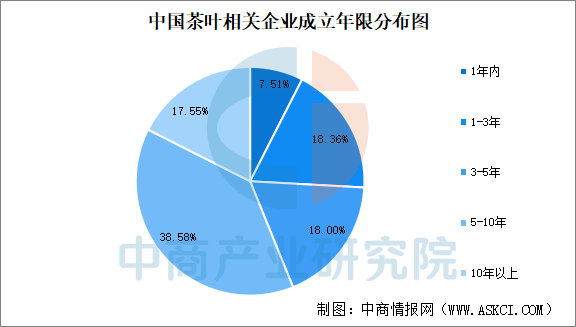 區(qū)域分布上,茶葉相關(guān)企業(yè)區(qū)域分布呈現(xiàn)明顯集聚特征,華東地區(qū)占比最高,達36.96%,是茶葉相關(guān)企業(yè)核心聚集區(qū);西南地區(qū)(19.80%)、華南地區(qū)(16.83%)、華中地區(qū)(15.70%)緊隨其后。