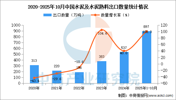 2025年10月中國水泥及水泥熟料出口量及金額增長(zhǎng)情況